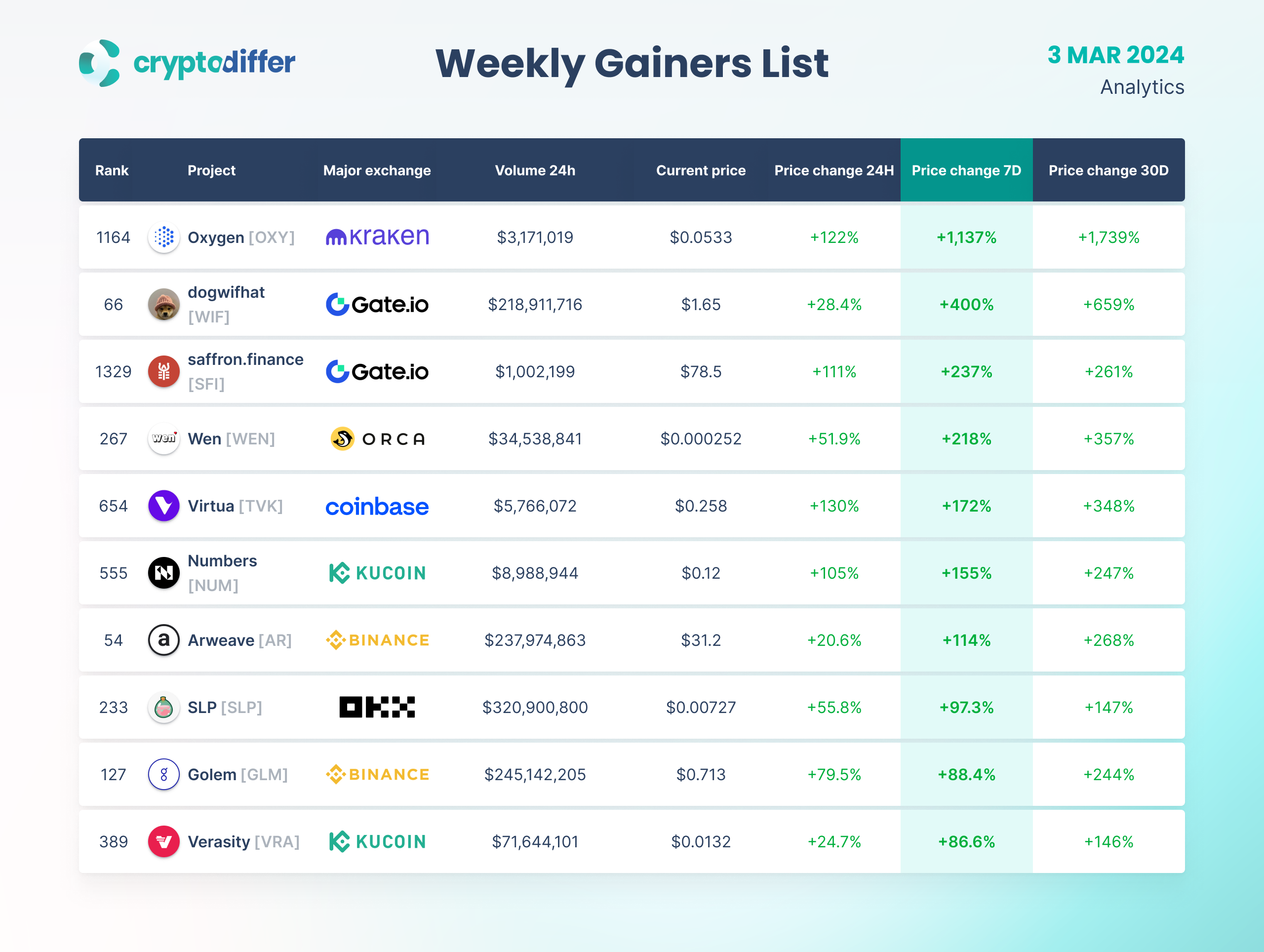 WEEKLY GAINERS LIST