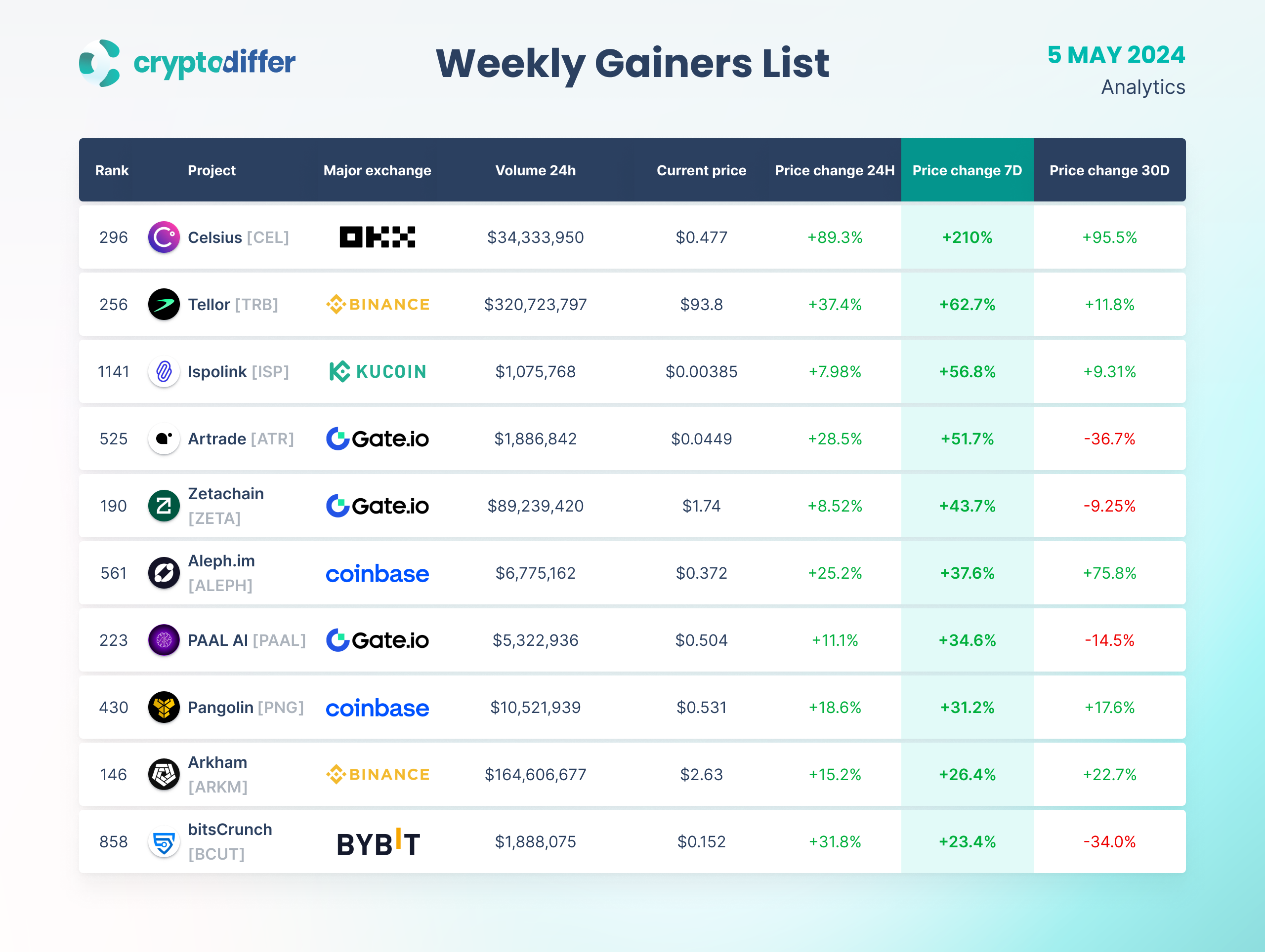 WEEKLY GAINERS LIST