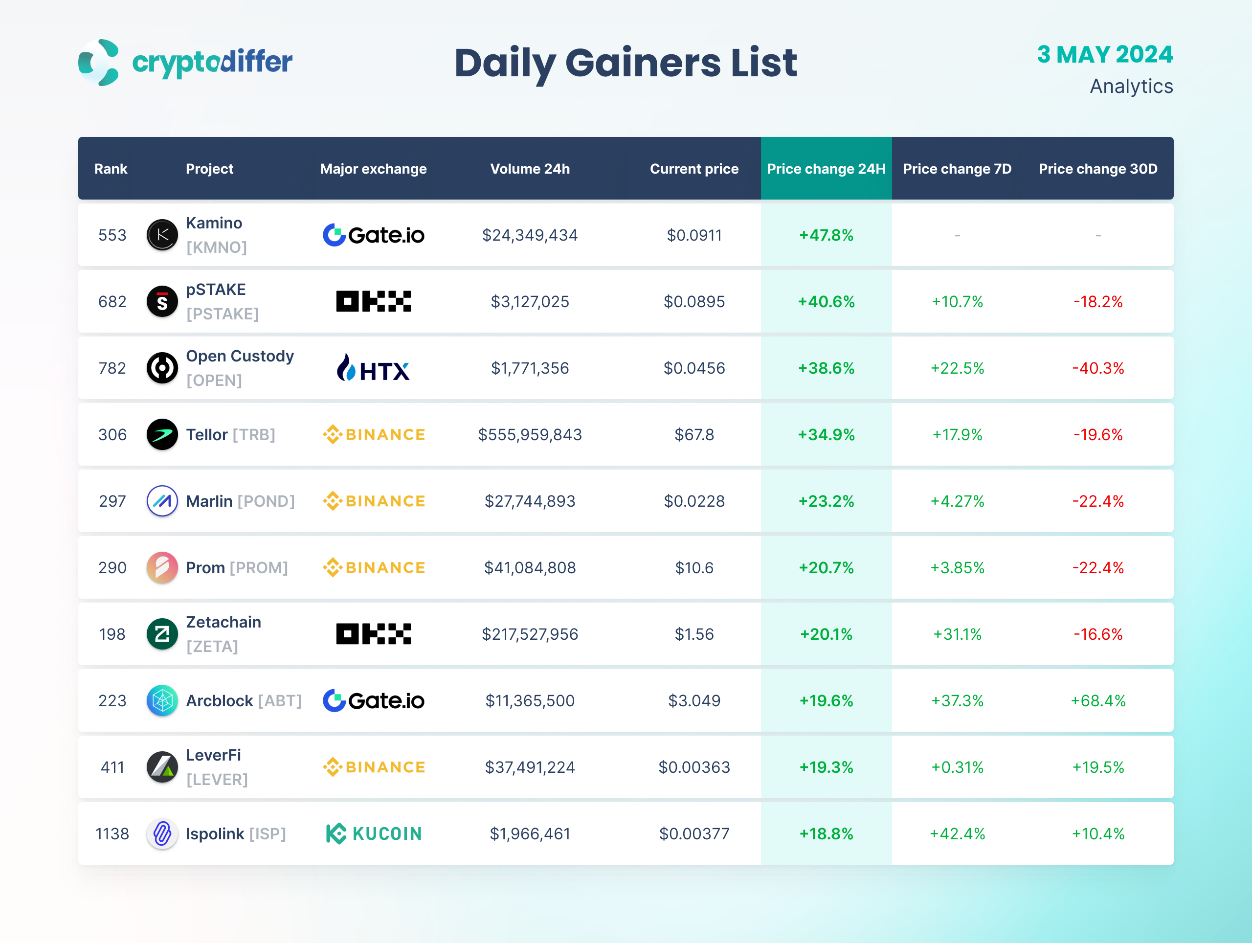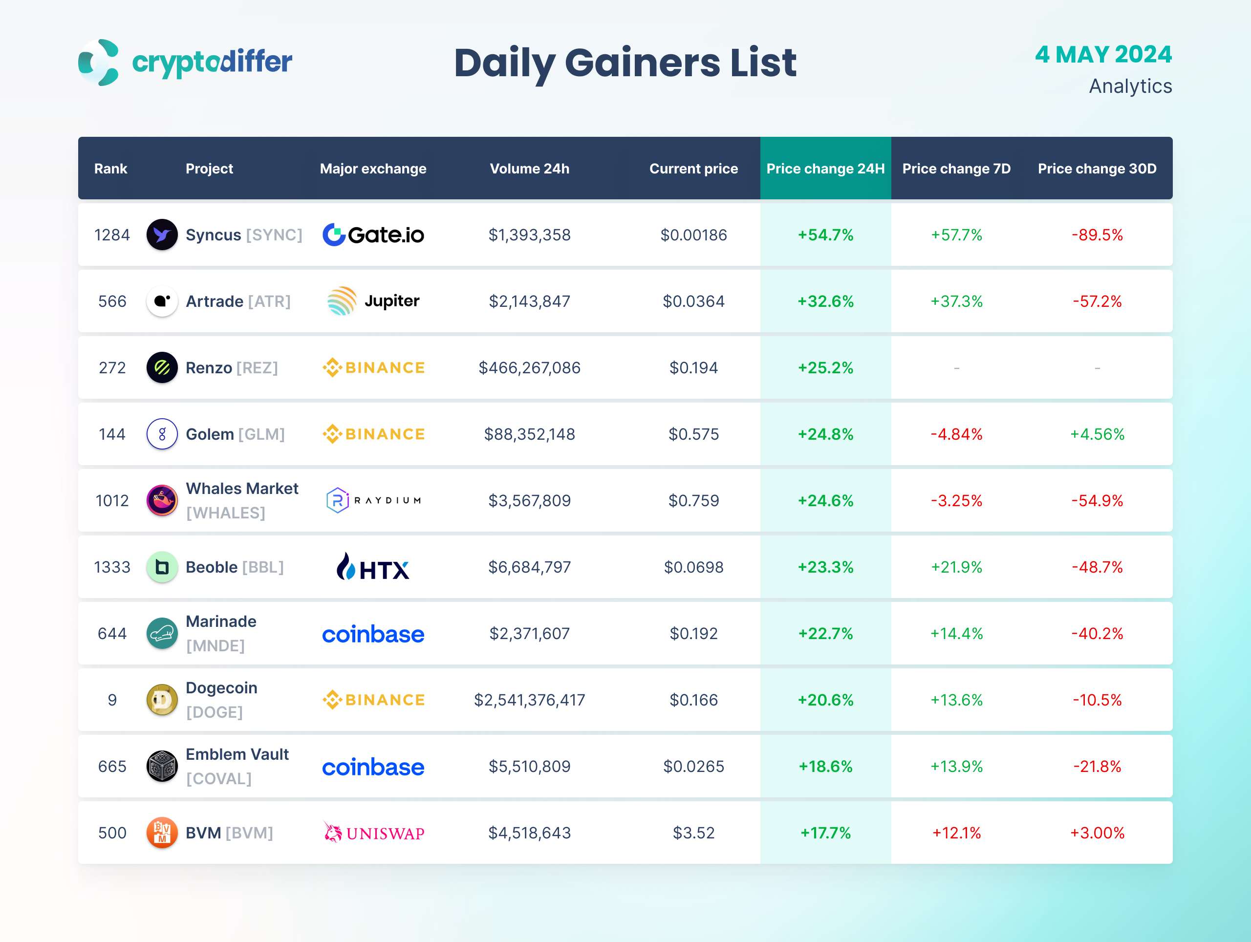 DAILY GAINERS LIST