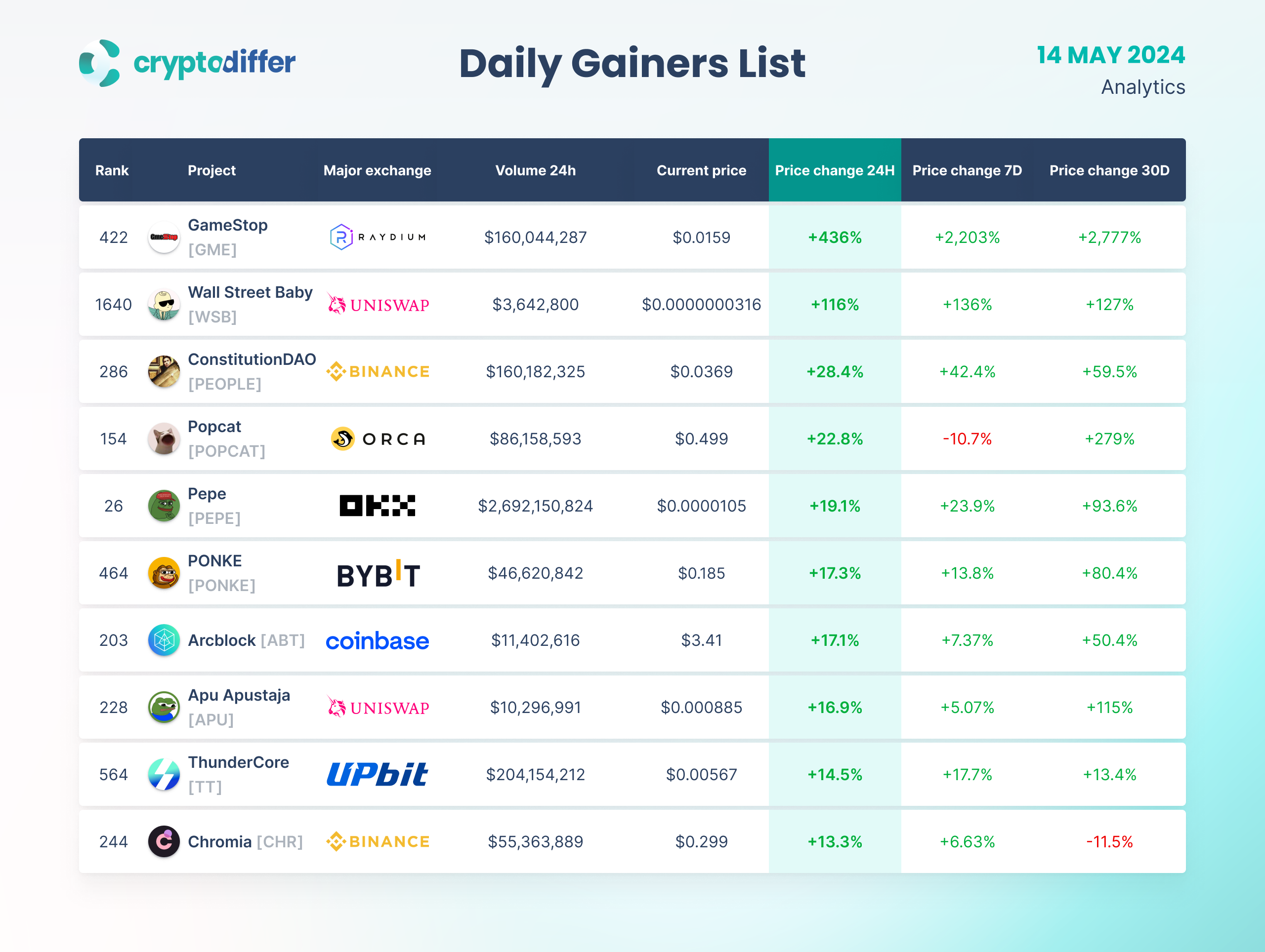 DAILY GAINERS LIST