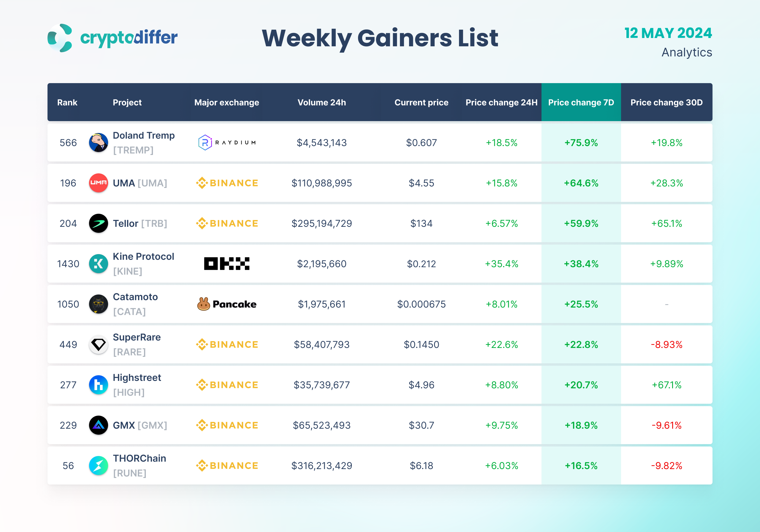 WEEKLY GAINERS LIST