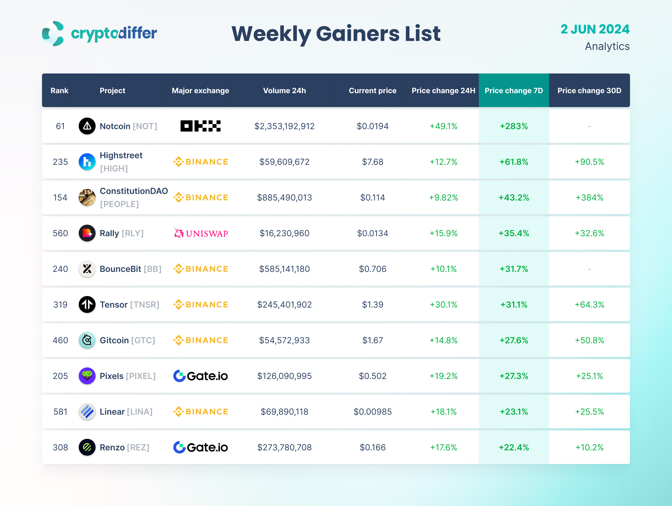 WEEKLY GAINERS LIST
