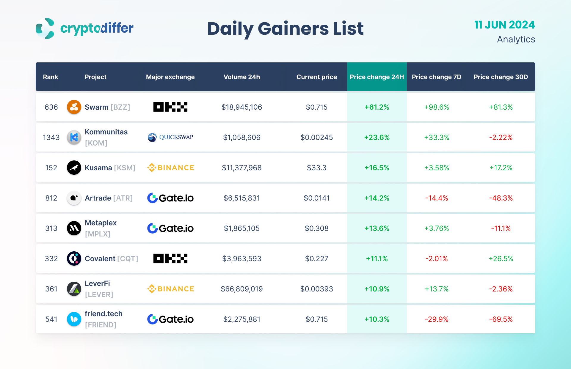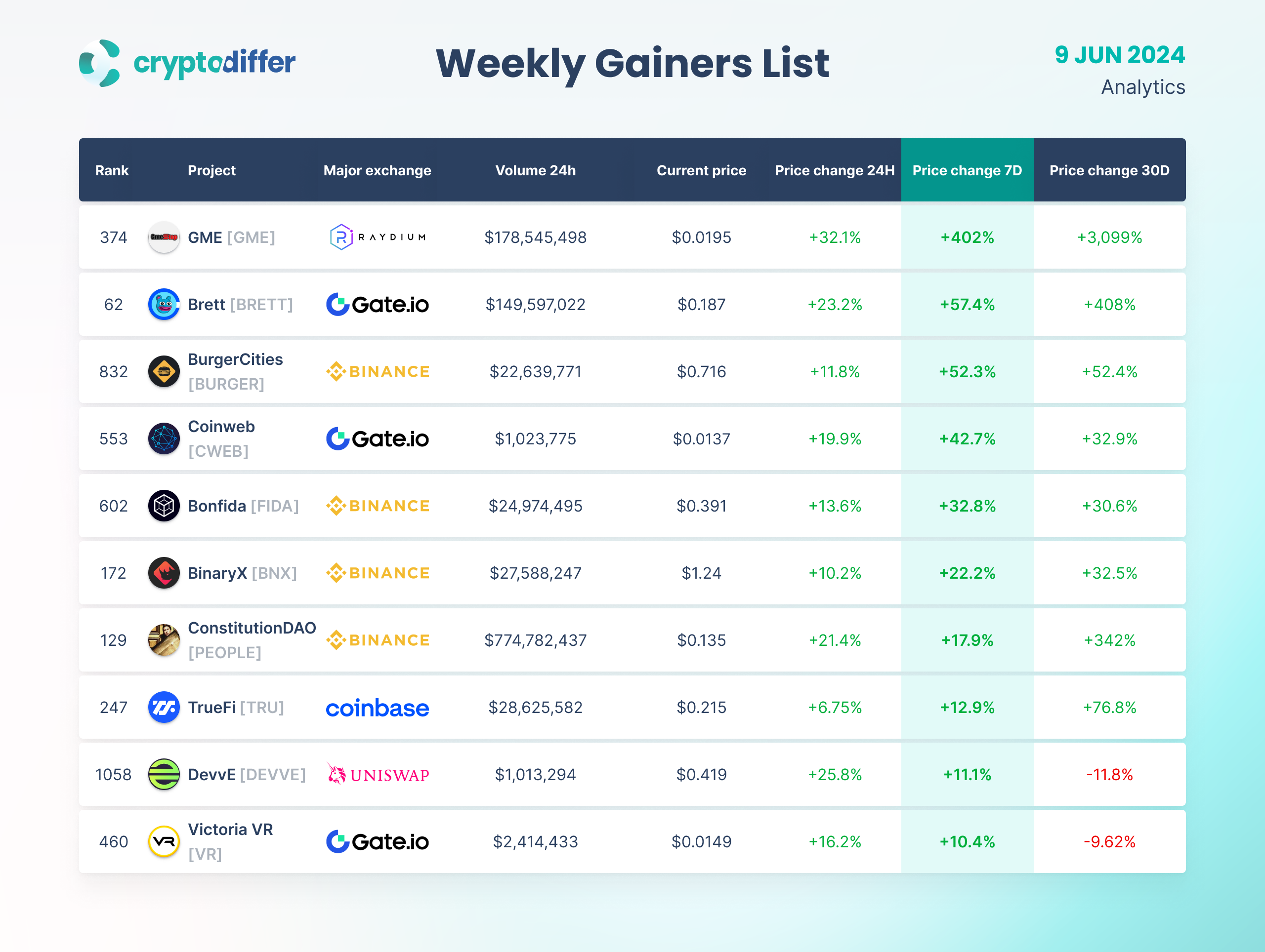WEEKLY GAINERS LIST