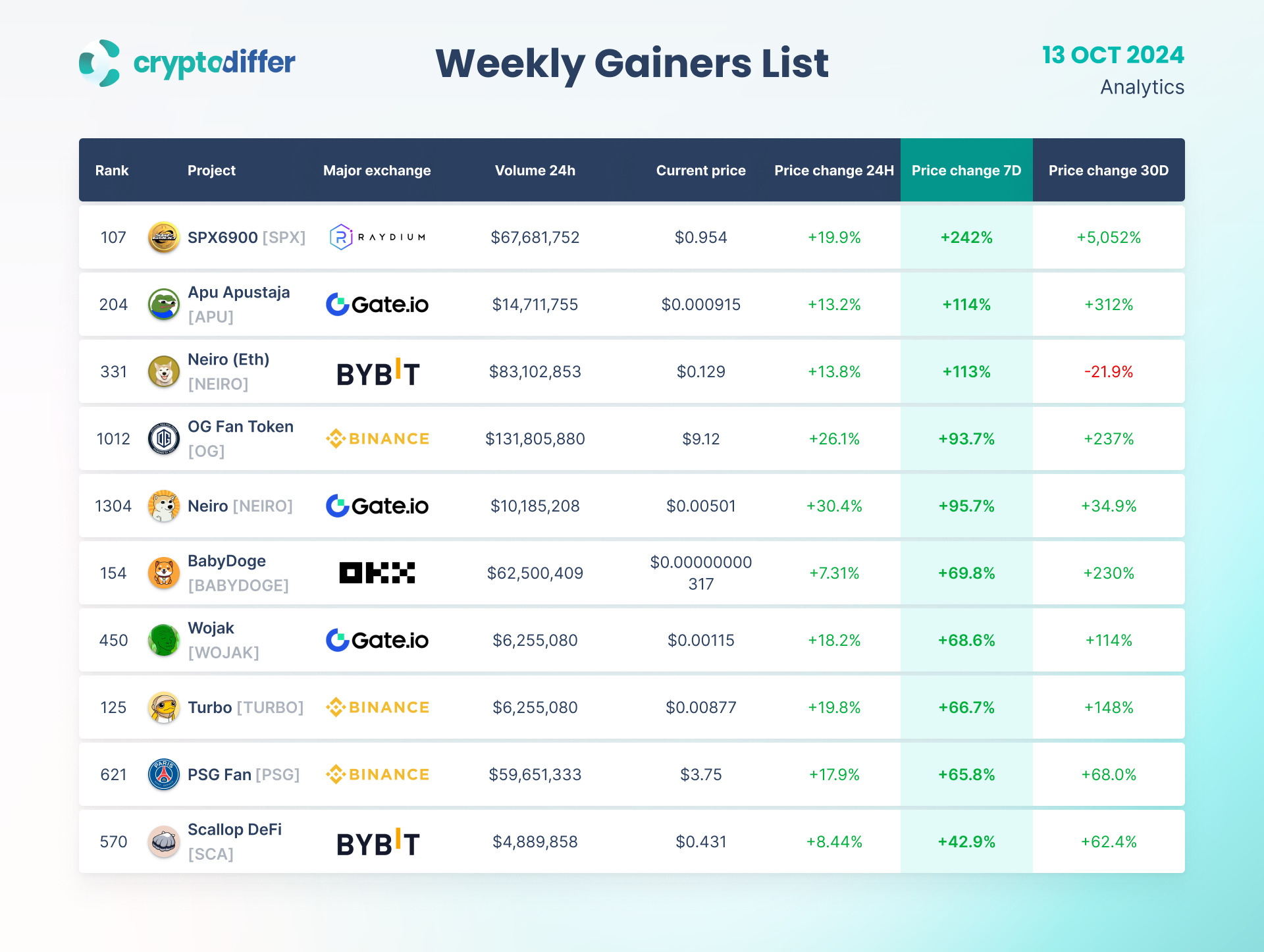 WEEKLY GAINERS LIST