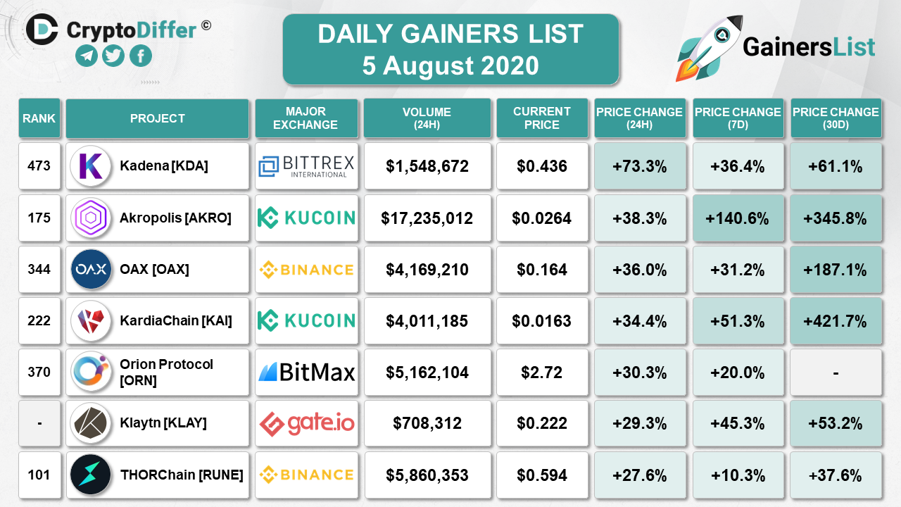 ​​KUCOIN WEEKLY GAINERS LIST