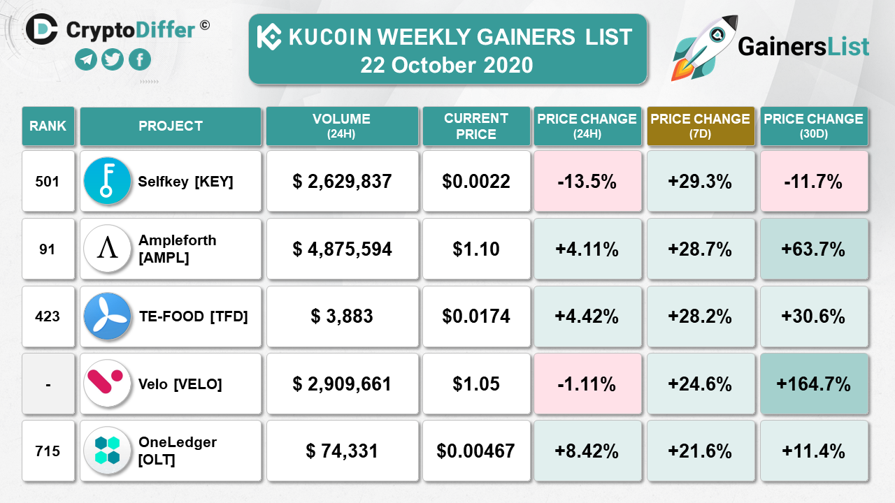 ​​KUCOIN WEEKLY GAINERS LIST
