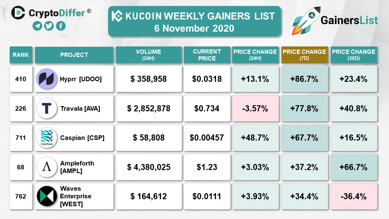KUCOIN WEEKLY GAINERS LIST