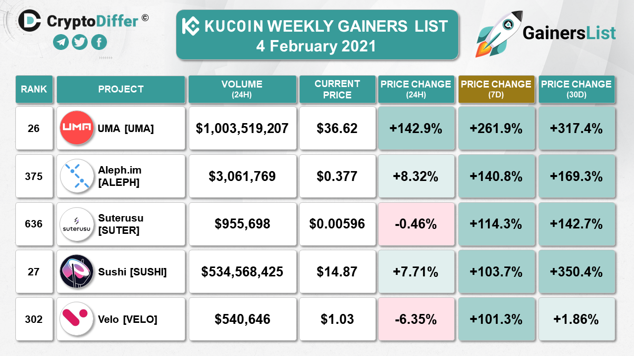 ​​KUCOIN WEEKLY GAINERS LIST