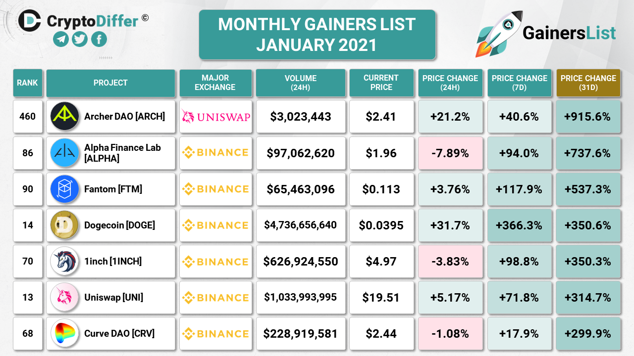 ​​MONTHLY GAINERS LIST