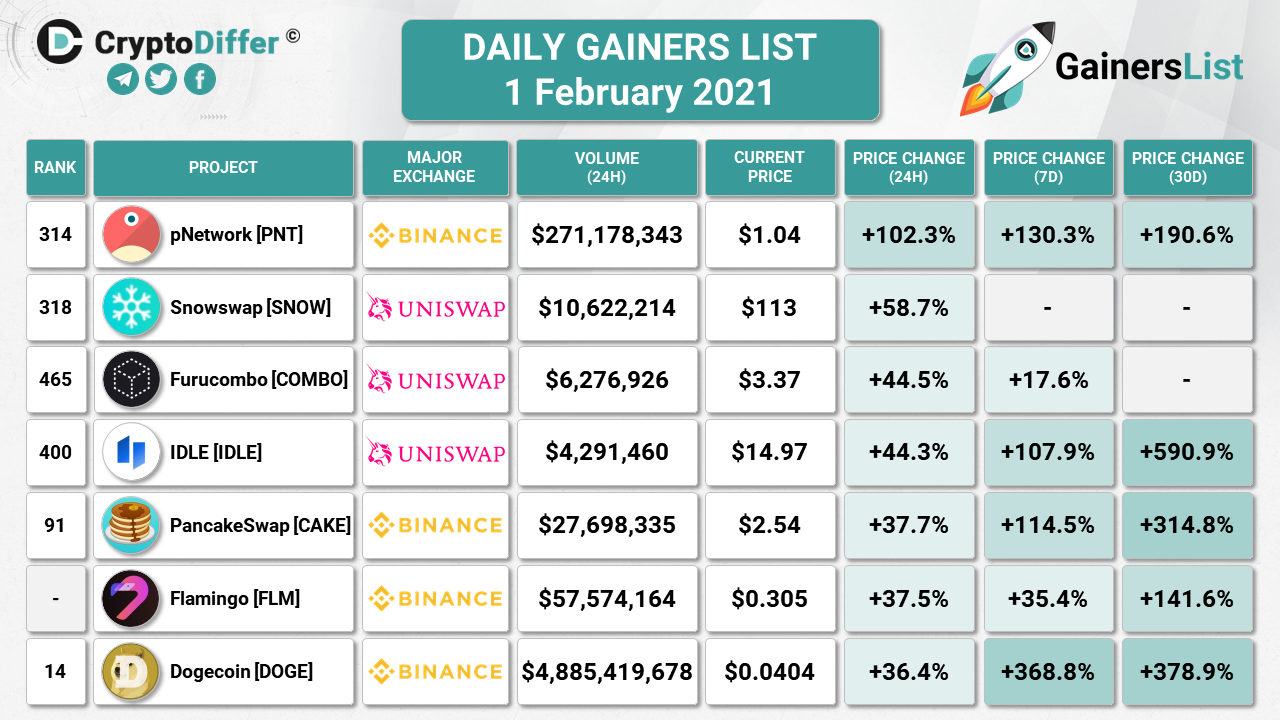 ​​GATE.IO WEEKLY GAINERS LIST