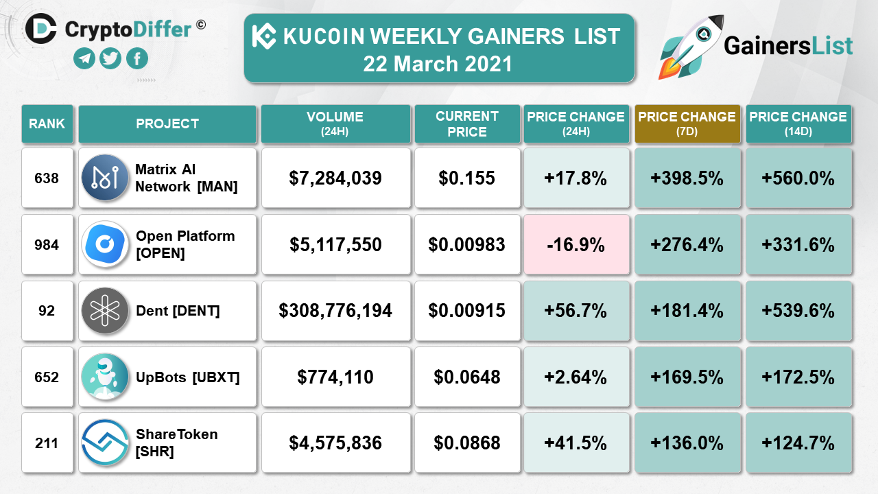 KUCOIN WEEKLY GAINERS LIST