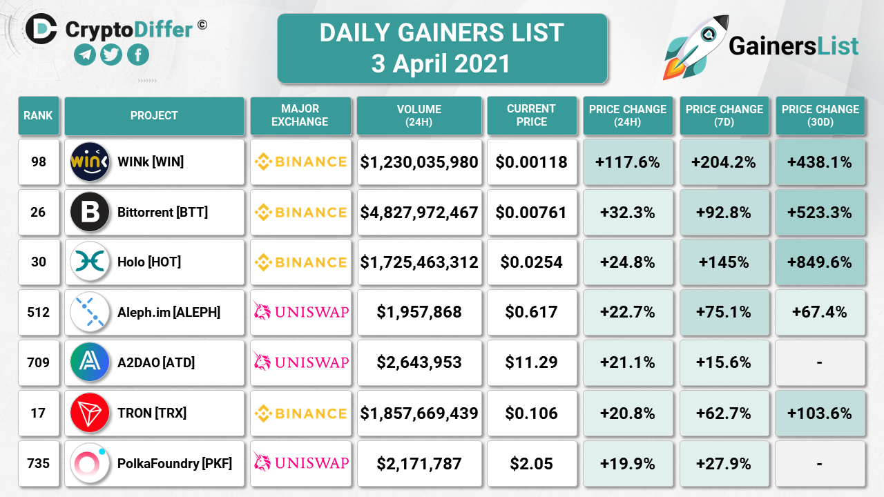 ​​DAILY GAINERS LIST