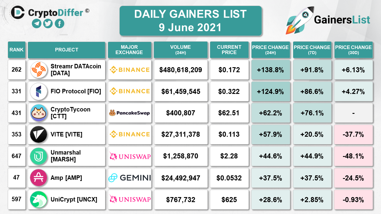 ​​GATE.IO WEEKLY GAINERS LIST