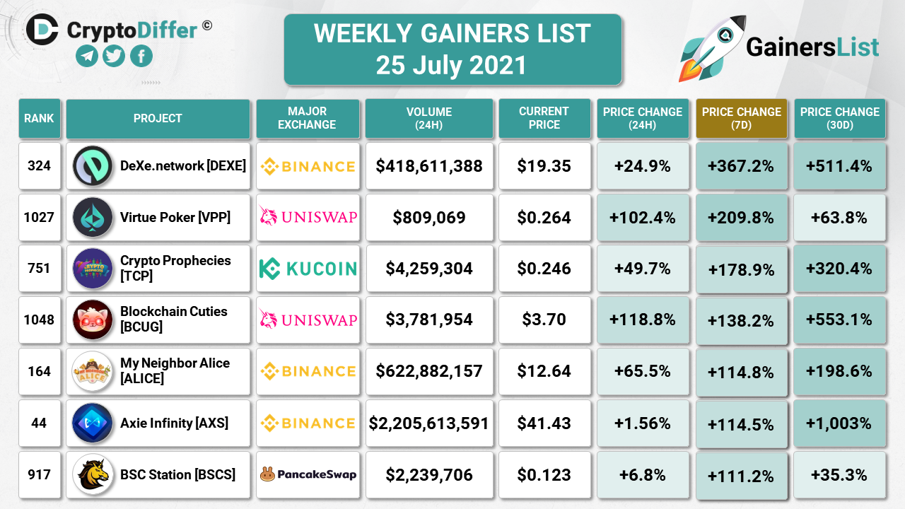 WEEKLY GAINERS LIST