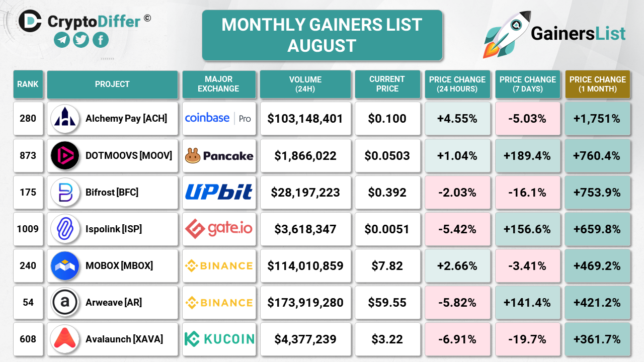 MONTHLY GAINERS LIST