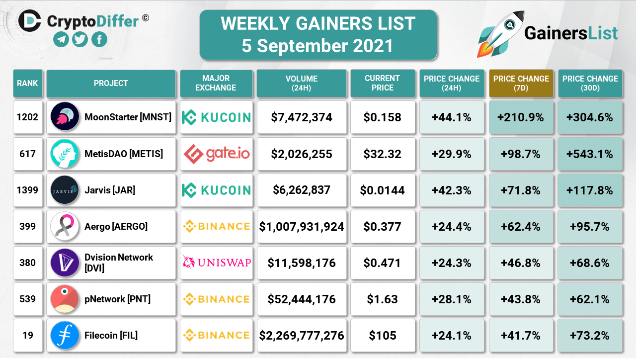 KUCOIN WEEKLY GAINERS LIST