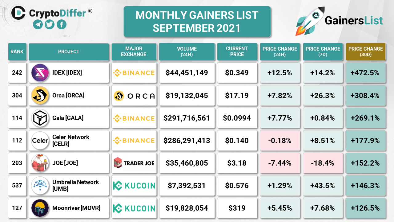 MONTHLY GAINERS LIST