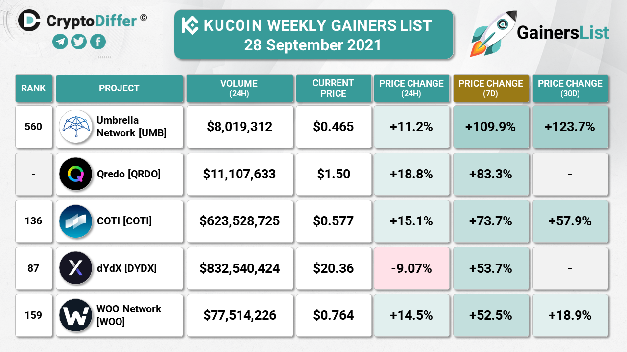KUCOIN WEEKLY GAINERS LIST