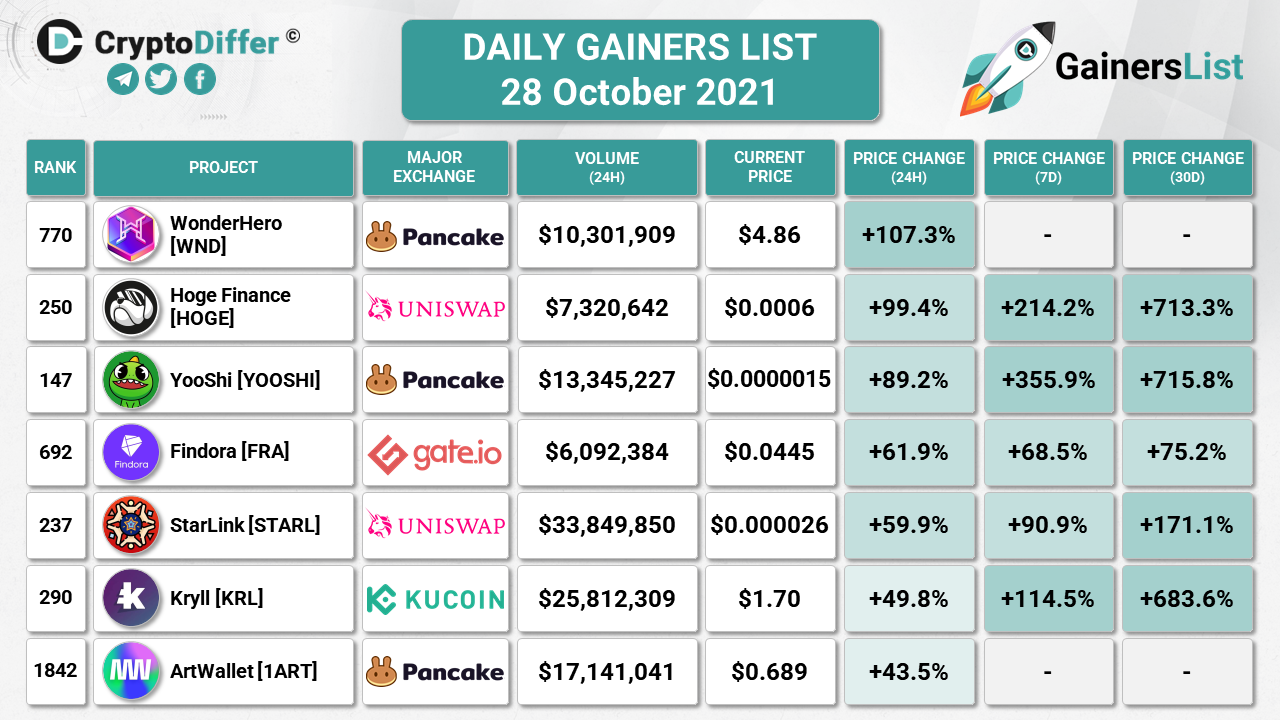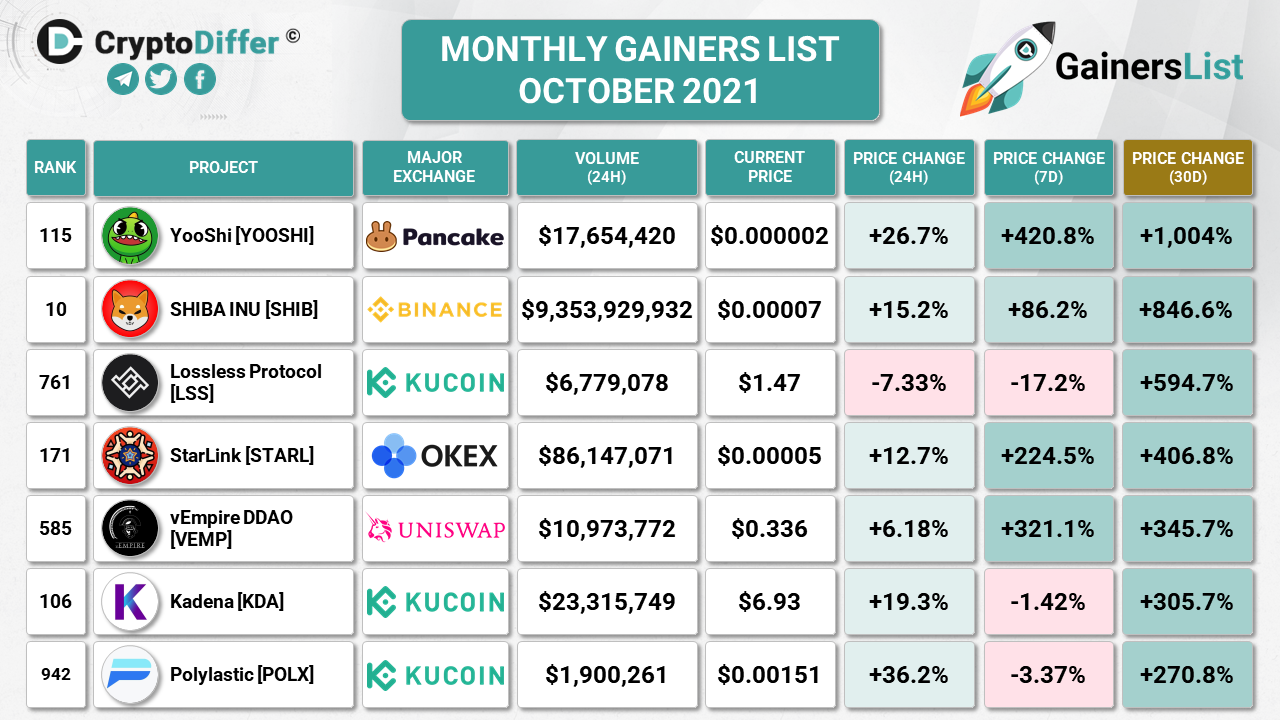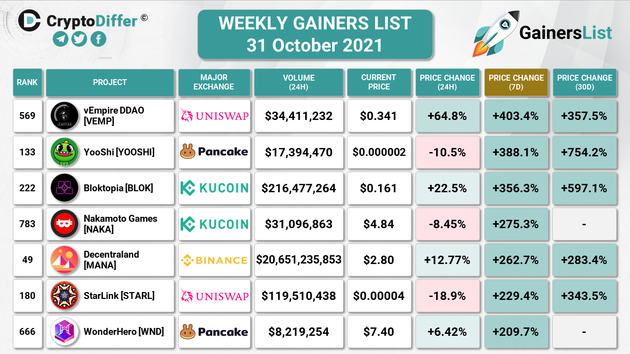 KUCOIN WEEKLY GAINERS LIST