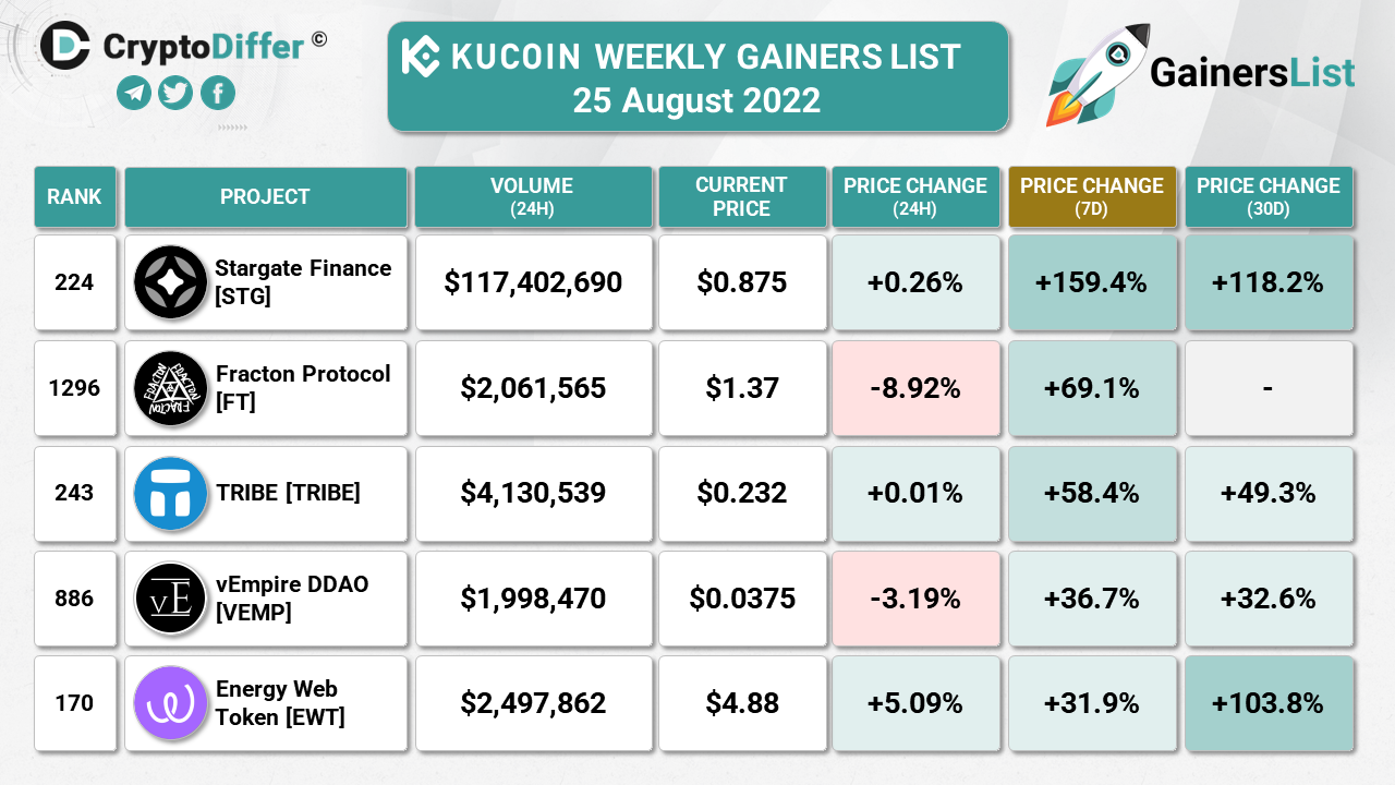 KUCOIN WEEKLY GAINERS LIST