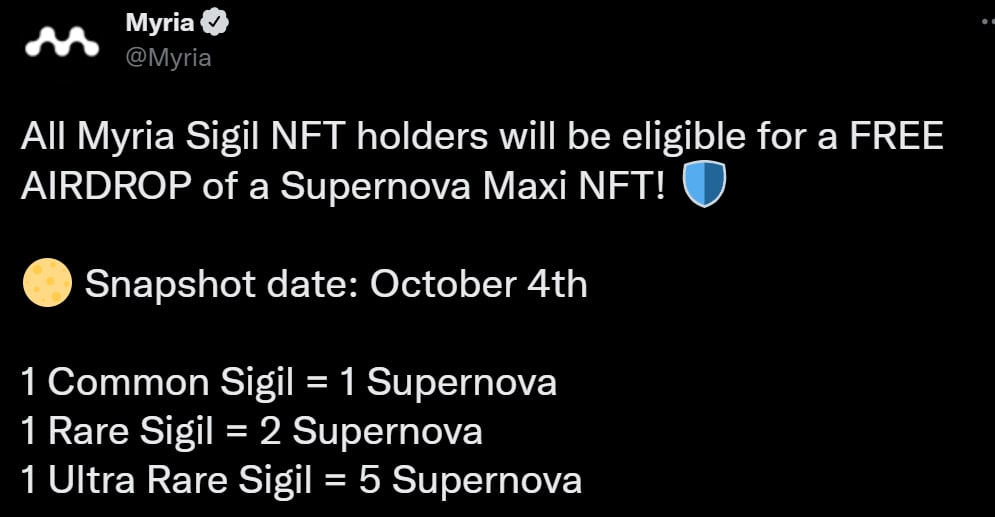 ⚡️Новости от Myria (анонс airdrop'а для холдеров Sigil NFT)