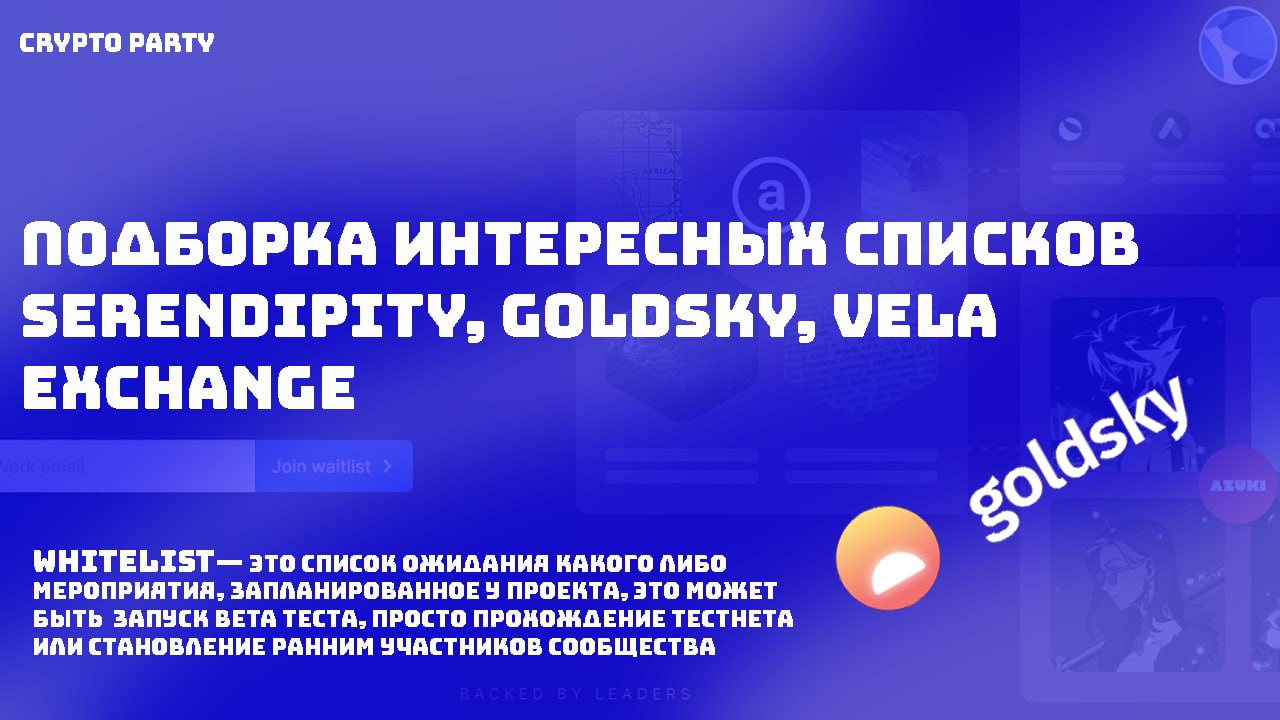 ⚡️ Подборка новых интересных списков ожидания, куда вы обязаны подать заявку — Serendipity, Goldsky, Vela Exchange