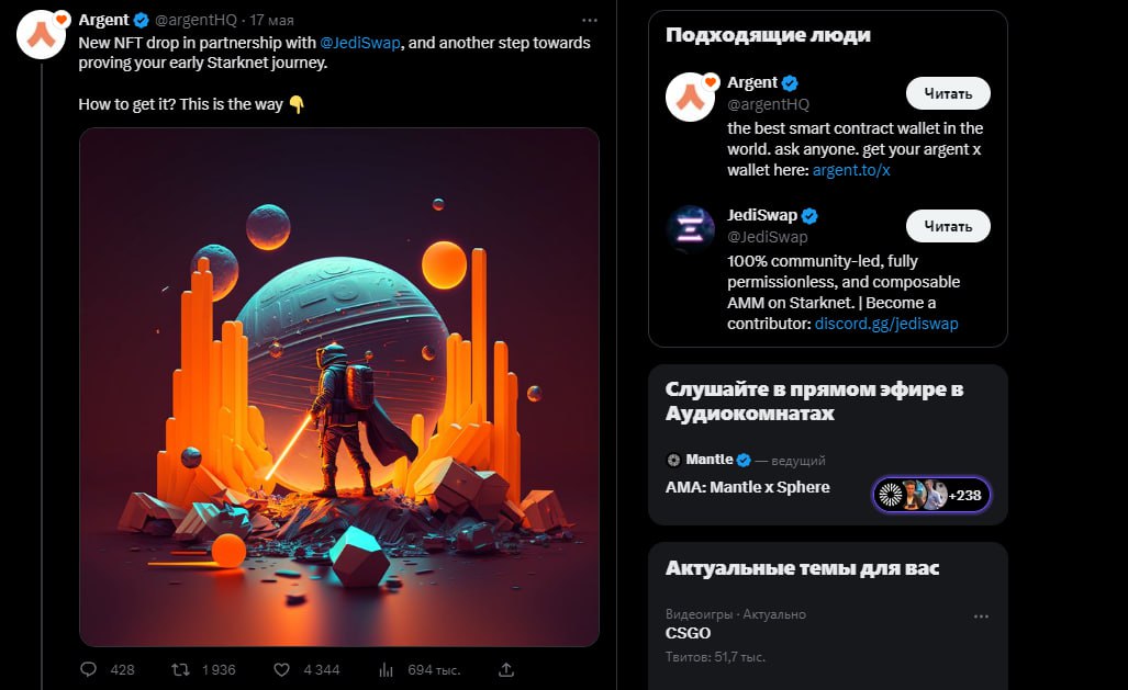 🗓 Дедлайн по выполнению 24 мая в 03:00, если вы уже совершали обмен с 1 апреля используя JediSwap и кошелек Argent X, вы автоматически получаете право, чтобы претендовать на NFT