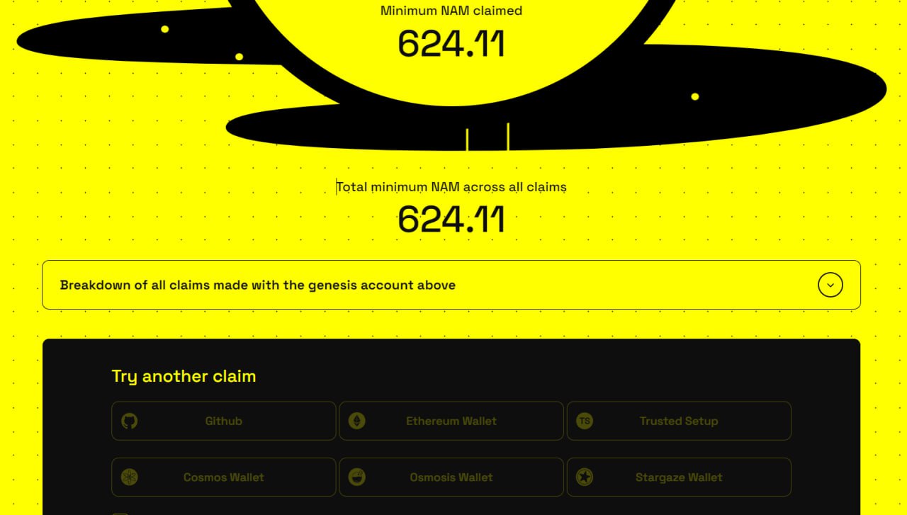 🧑💻 Команда анонсировала Airdrop в токенах $NAM в количестве 65 млн токенов (6.5% сапплая)