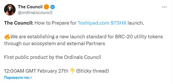 Интересное IDO на Toshipad — The Council (розыгрыш WL) 📝Toshipad — это лаунчпад на сети BRC-20, созданный при поддержке Ordinals Council (на данном лаунчпаде проходит листинг почти всех топовых проектов на BRC20) ✍️ В этот раз проходит не банальный сейл…