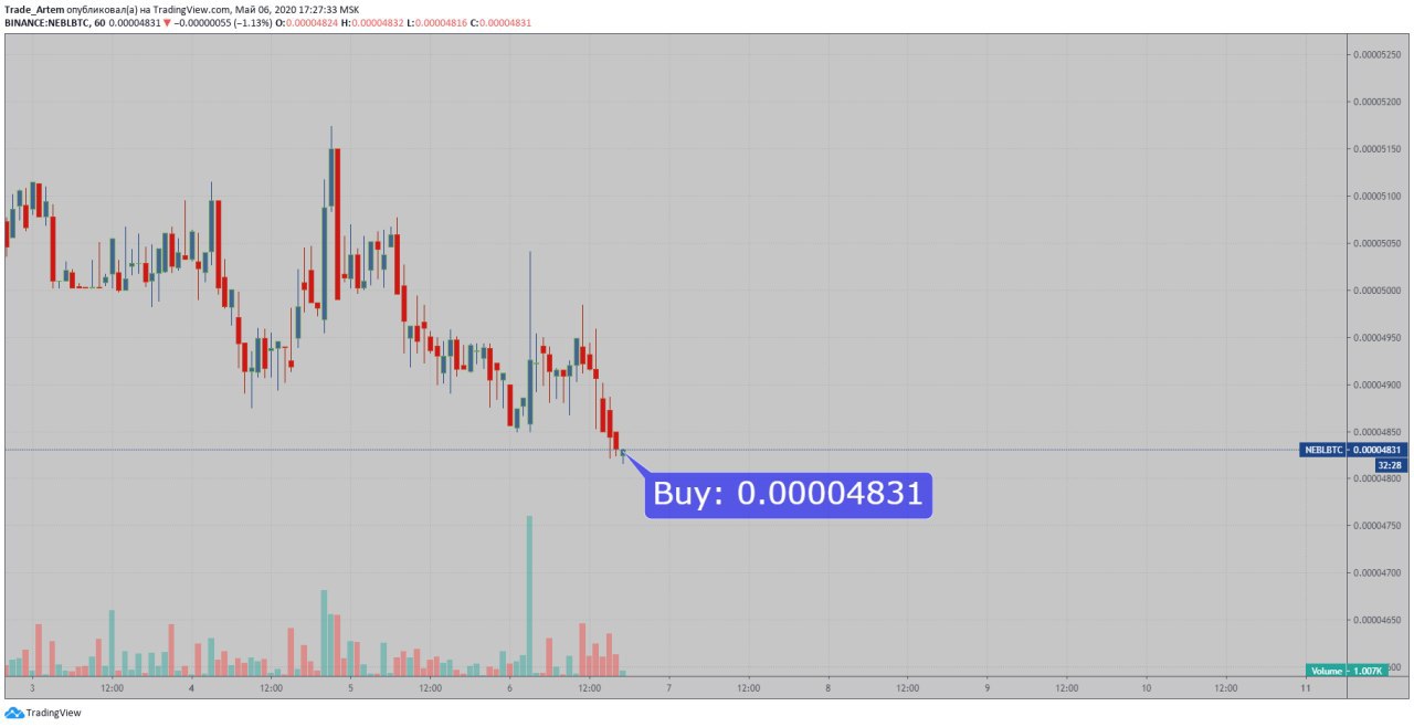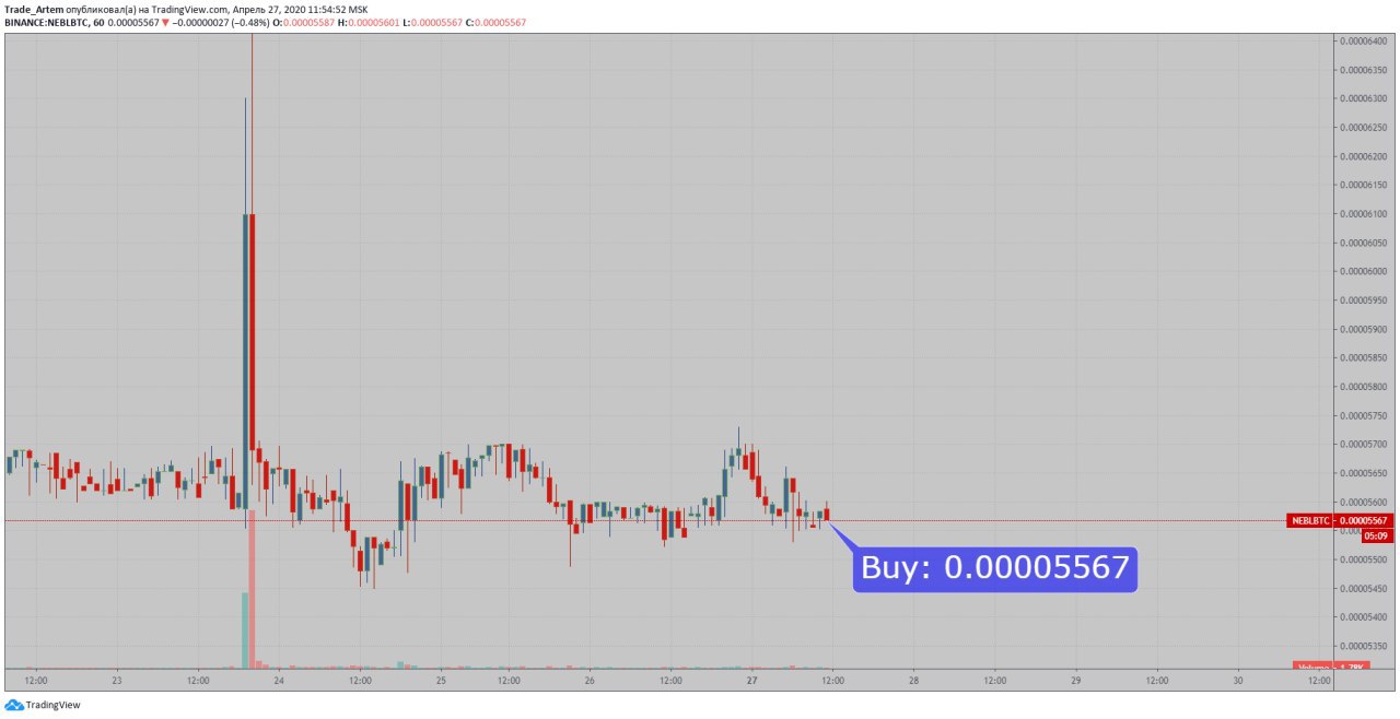 #Artem_Trade#NEBL Сейчас хорошая точка входа. Перезаходим. При стабильном BTC ожидаю очередной цикл пампа монетки