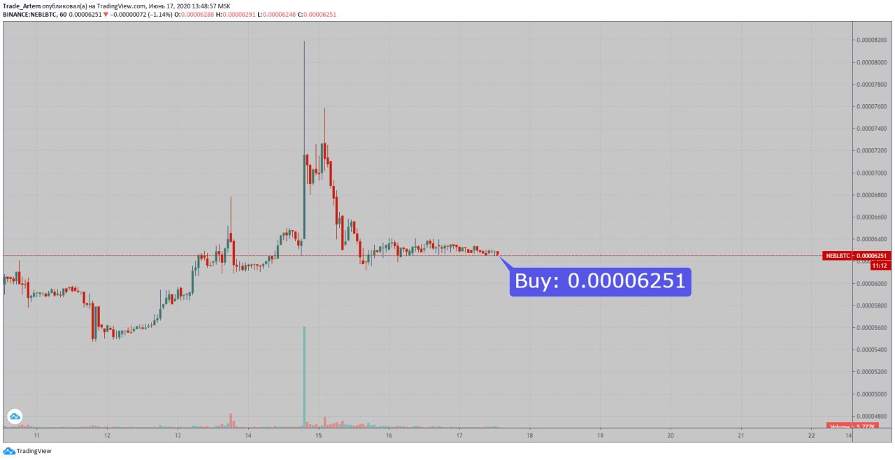 #Artem_Trade#NEBL (уже закрывал 1 2 и 3 цели), сейчас перезаходим. Хорошая точка входа, при стабильном BTC ожидаю памп монеты