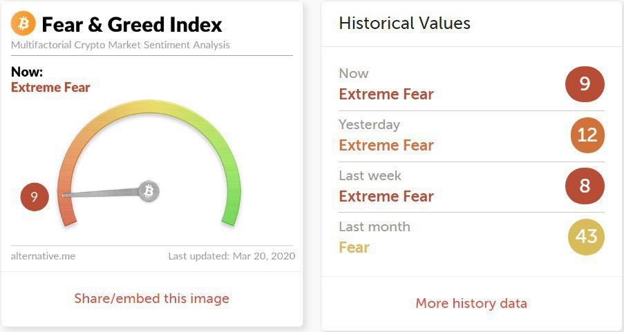 Индекс страха и жадности сильно упал за последнее время и сегодня находится на уровне - 9.