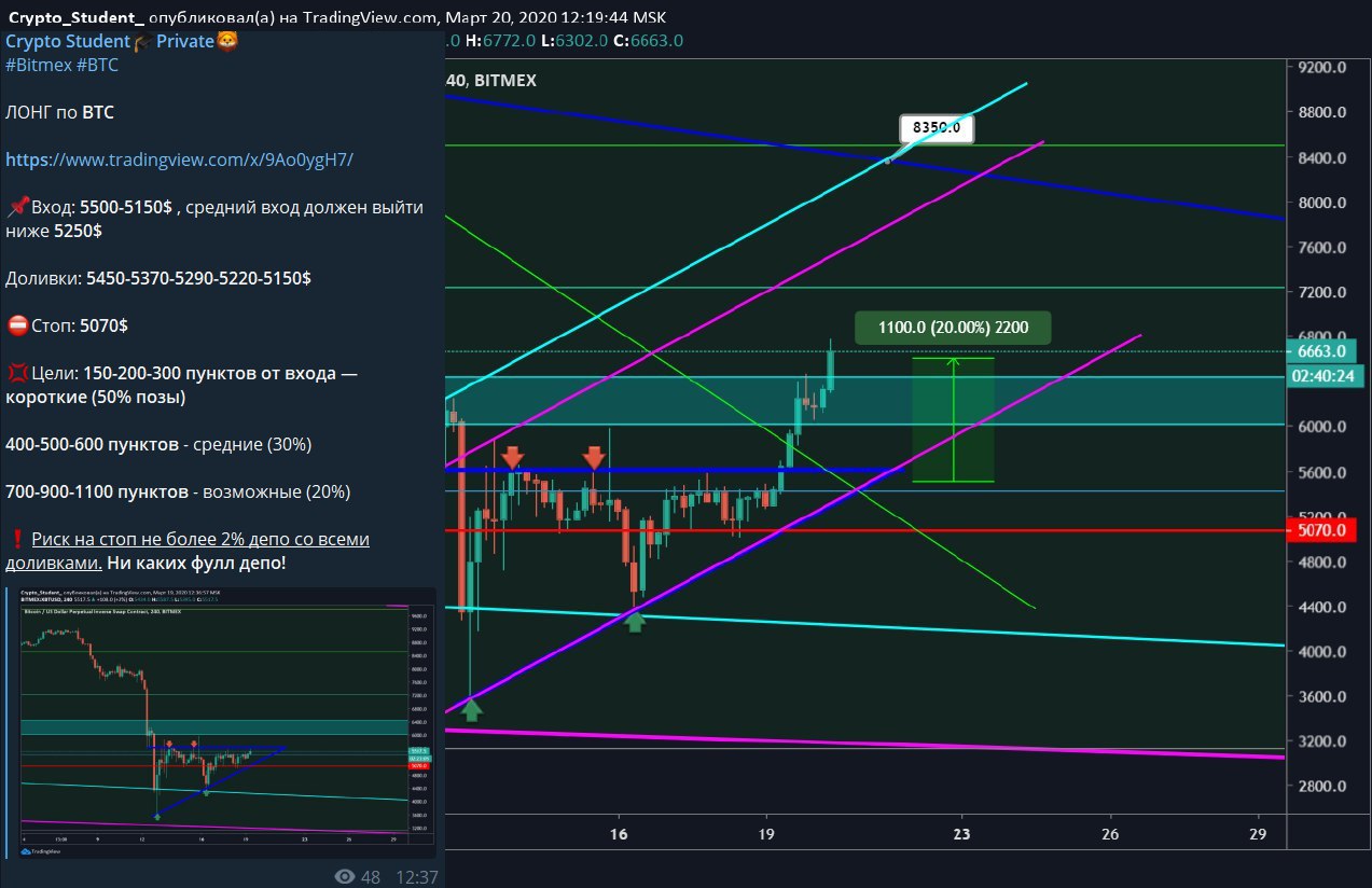 Я скорее всего буду набирать скальп лонг от уровней 6300-6000$, с целями 6700-7200$. Если возьму, напишу.