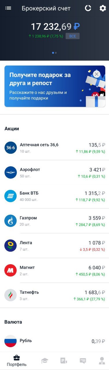 P.S. Так же по заведении счета по моей ссылке вы получите рандомную акцию в свой портфель. В свое время я получил пакет акций Детского мира, на сумму 1000р.❗️