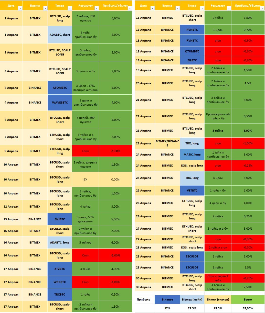 🗓Хочу предоставить вам отчет работы нашей приватной группы, с 1 по 30 апреля.