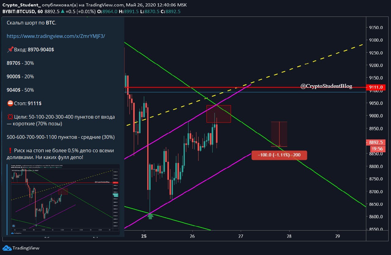 В приватной группе взяли шорт от 8976$, забрали 2 тейка!✅ Стоп уже перевели в прибыльное бу — 8970$. ❗️Напоминаю, что при регистрации и торговли по моей партнерской ссылке Bybit: https://partner.bybit.com/b/CryptoStudent , вы получаете единоразовую скидку…