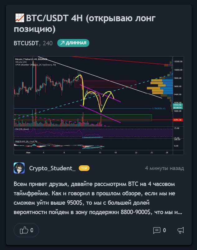 Мы в приватной группе держим лонг позицию со входом 9075$, поздравляю всех с профитом!💰