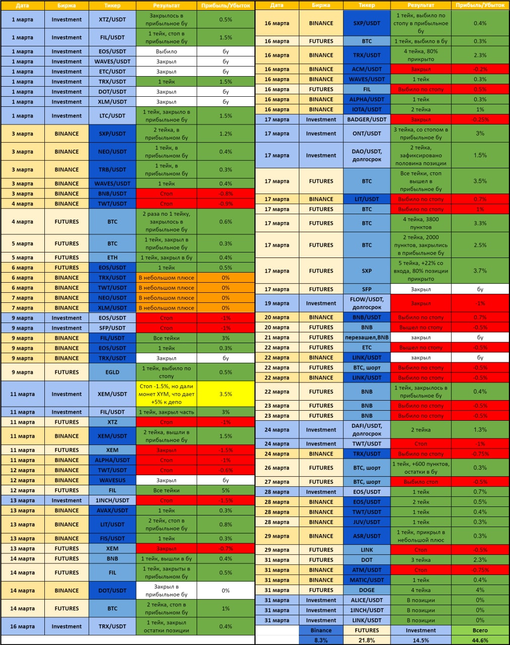 🗓По традиции хочу предоставить вам отчет работы нашей приватной группы, с 1 по 31 марта!
