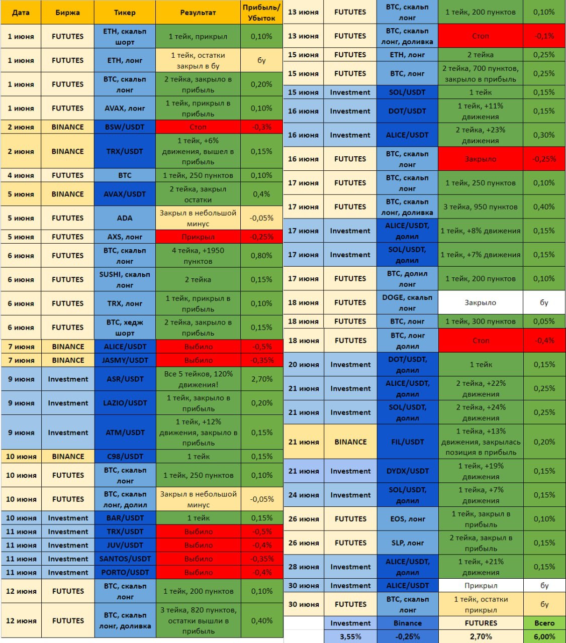 🗓По традиции хочу предоставить вам отчет работы нашей приватной группы, с 1 по 30 июня!