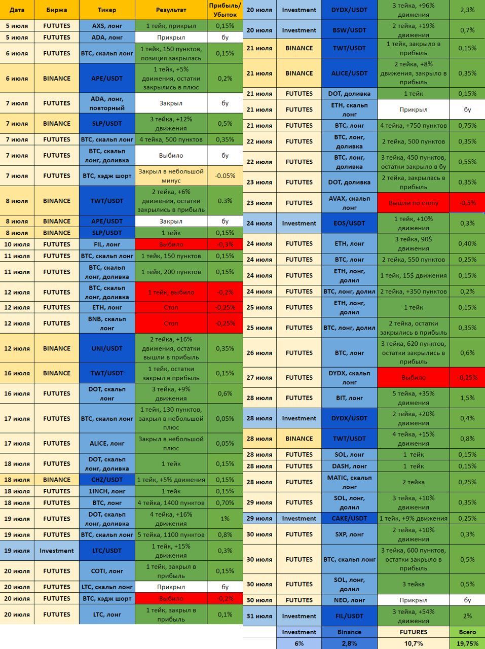 🗓По традиции хочу предоставить вам отчет работы нашей приватной группы, с 1 по 31 июля!