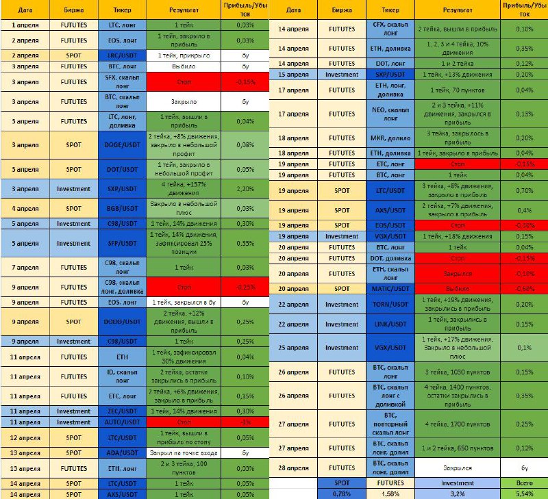 📍Традиционный отчёт моего закрытого Клуба, с 1 по 30 апреля.