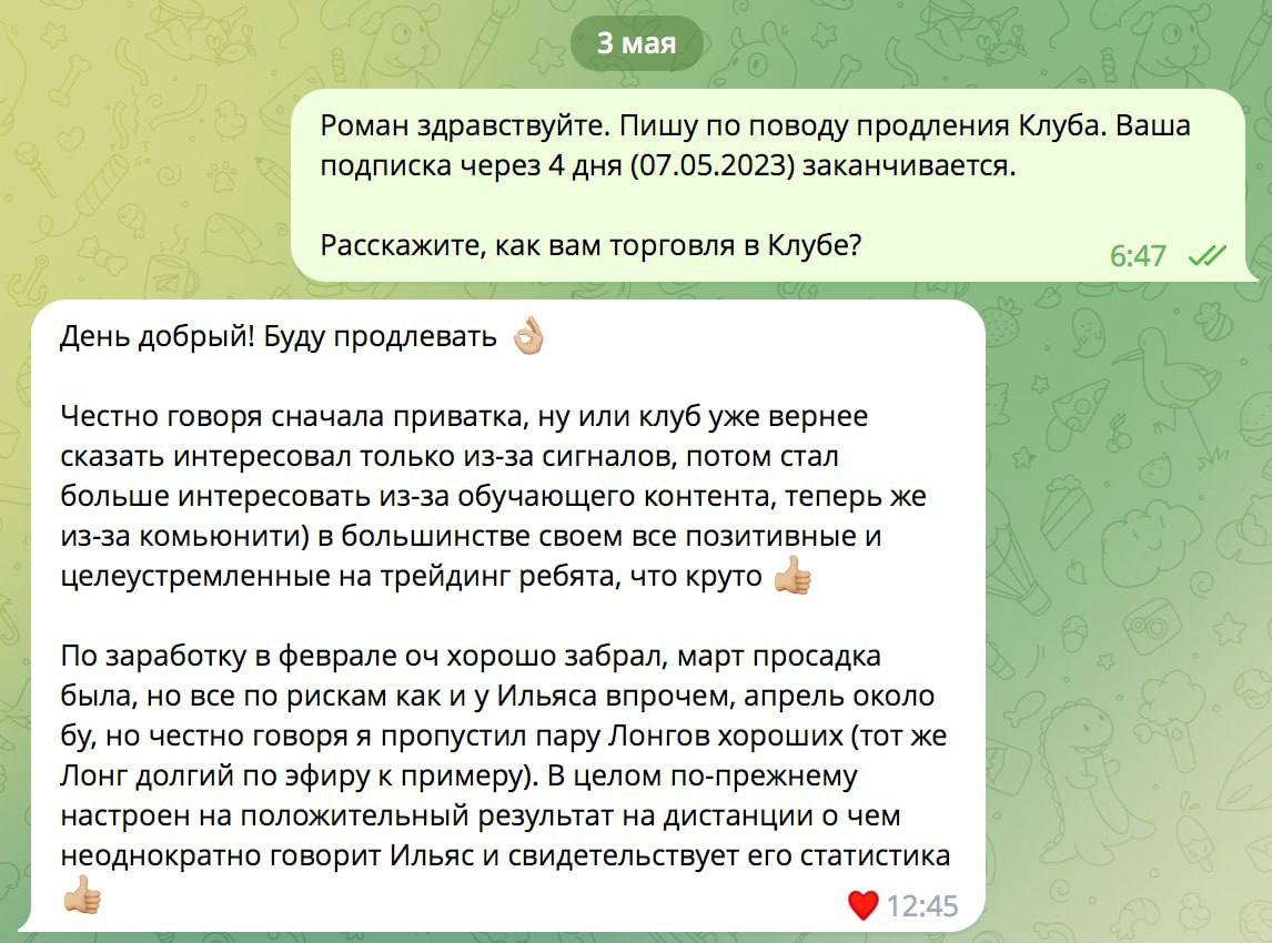 👉🏻Попав в команду, Рома понял, что Клуб это не просто группа с сигналами (которые кстати отрабатывают на 80%📊). Клуб это крутое комьюнити, обучающий материал, грамотные сетапы, живые разборы активов, ОПЫТ других трейдеров!