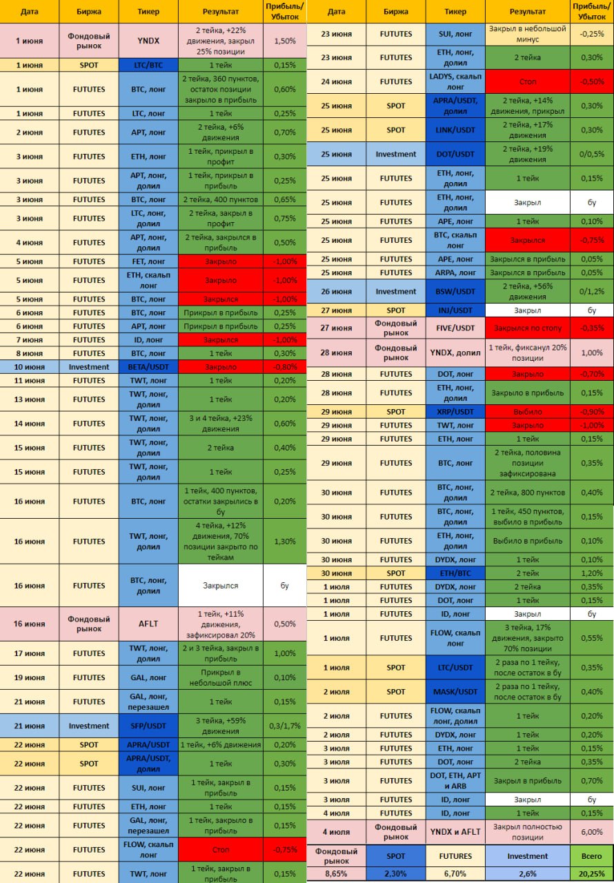 Ниже прикрепил таблицу всех сделок в Клубе за июнь. Всё предельно прозрачно и открыто!