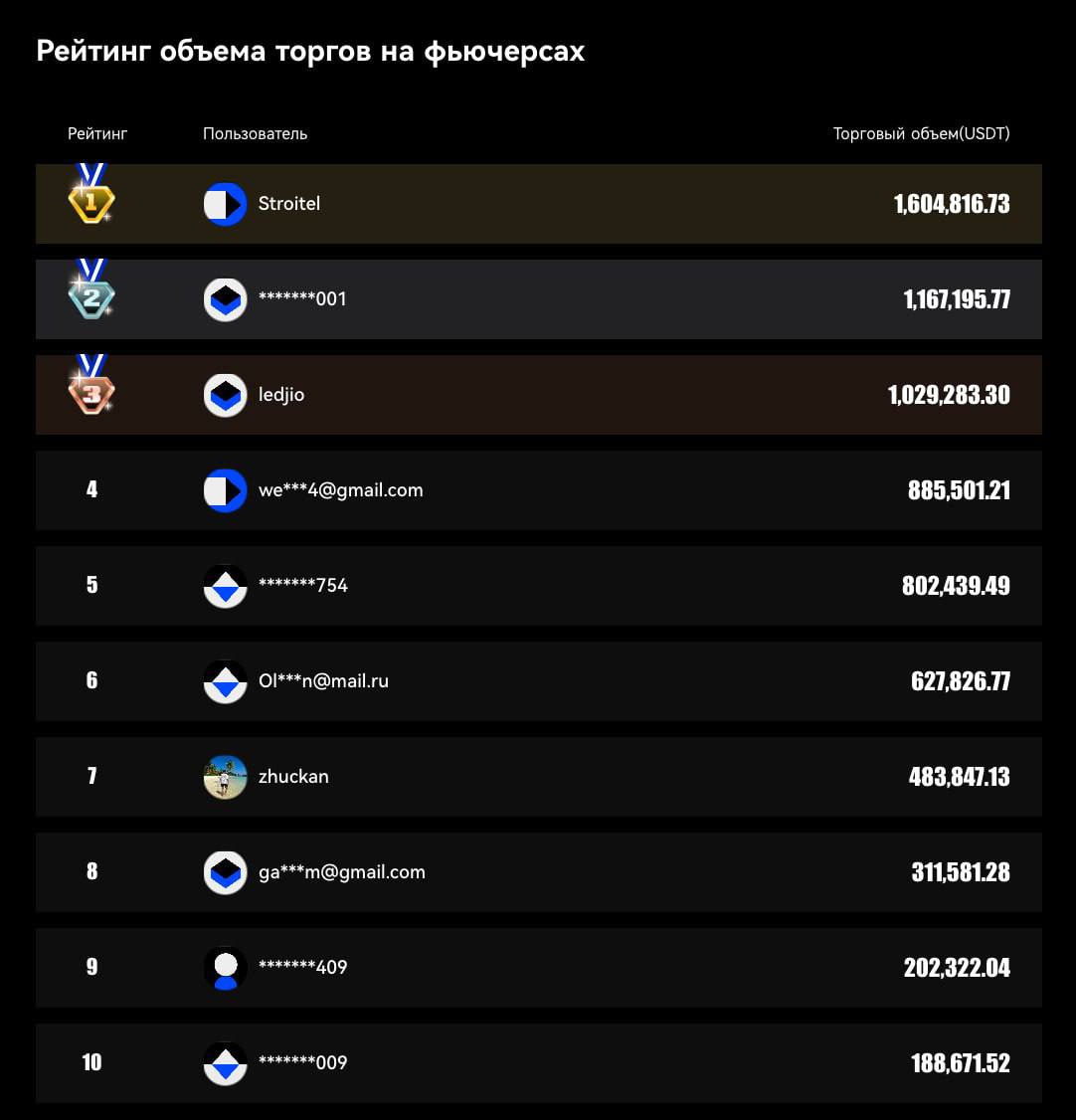 2. По наибольшему % PNL к депозиту, кто на каком месте, узнаем в конце турнира, запрошу данные у биржи.