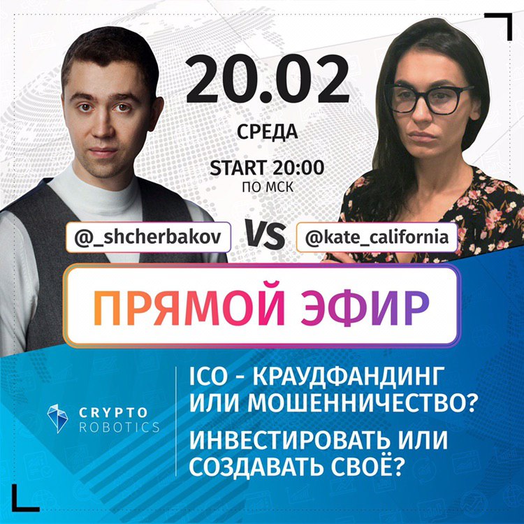 Сегодня в 20:00 по МСК Екатерина Костевич и Иван Щербаков встретятся в прямом эфире, чтобы ответить на важные вопросы: стоит ли доверять ICO, и как заработать — инвестировать или создать своё?