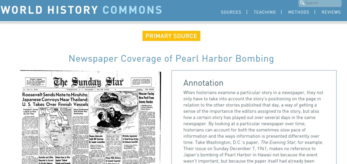 Фонд Общего достояния всемирной истории предлагает бесплатную коллекцию из более чем 1700 первоисточников, охватывающих широкий спектр тем и событий мировой истории. Самое приятное то, что все первоисточники в сборнике снабжены полезными примечаниями для студентов. Общее достояние всемирной истории также предлагает коллекцию бесплатных учебных пособий, в которых используется использование первоисточников.