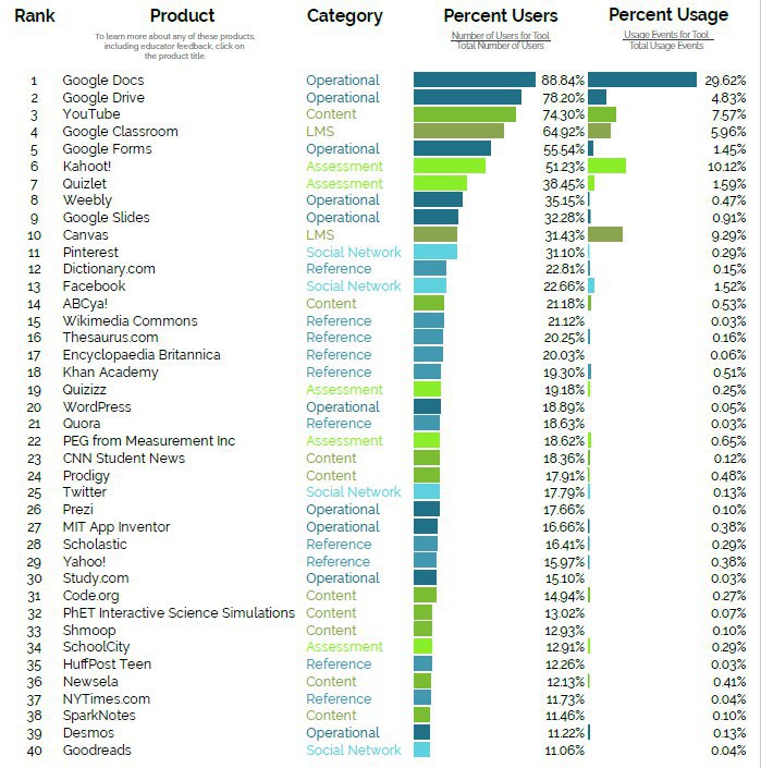 Что нового в новом школьном EdTech? «Лучшие 40» цифровых инструментов в школах США.