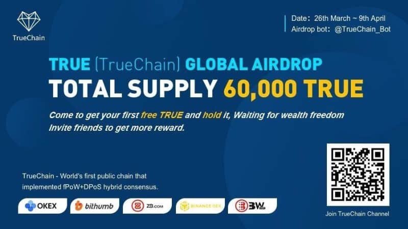 🔥TrueChain Airdrop is worth 60,000 TRUE ($21,000) tokens reward pool.