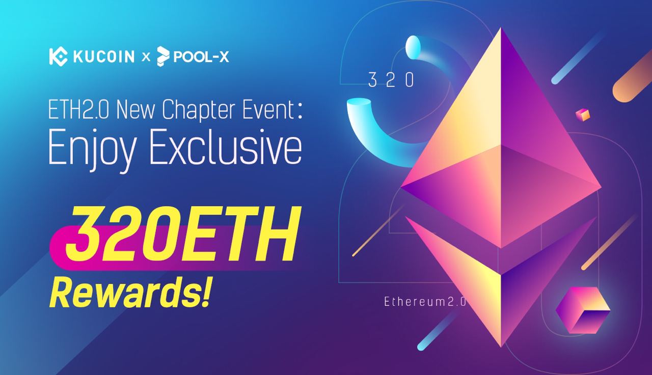 To celebrate the Ethereum2.0 (ETH2.0) upgrade and the launch of the ETH2.0 Staking program on Pool-X, KuCoin will be launching a joint campaign with Pool-X to give away a reward pool of 320 ETH (192,000 USD worth) to qualified KuCoin users.