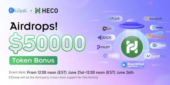🔥ELLIPAL and Heco are jointly giving away a total of $50,000 in 11 different tokens among 4,000 lucky winners daily.